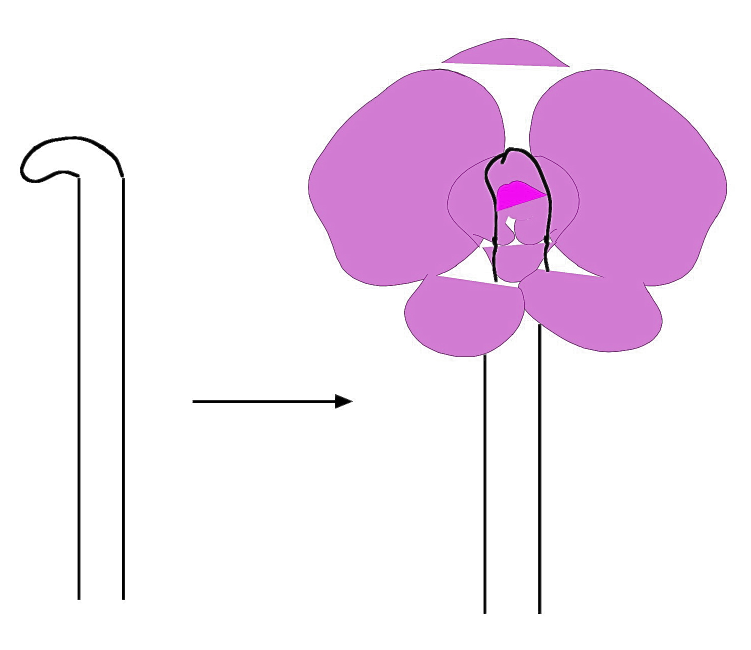 テーピングしたワイヤーの先端をカギ状に曲げ(5cm位)先端に近い花や葉に引っかけ